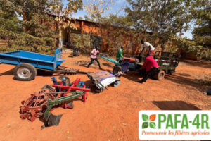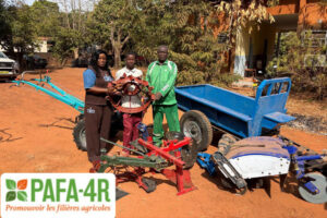 Le motoculteur acquis ร travers lโaccompagnement du P2RIA vient en soutien aux bรฉnรฉficiaires pour faciliter les opรฉrations culturales (labour, hersage, billonnage, โฆ) et de transport sur le site et dans le village.